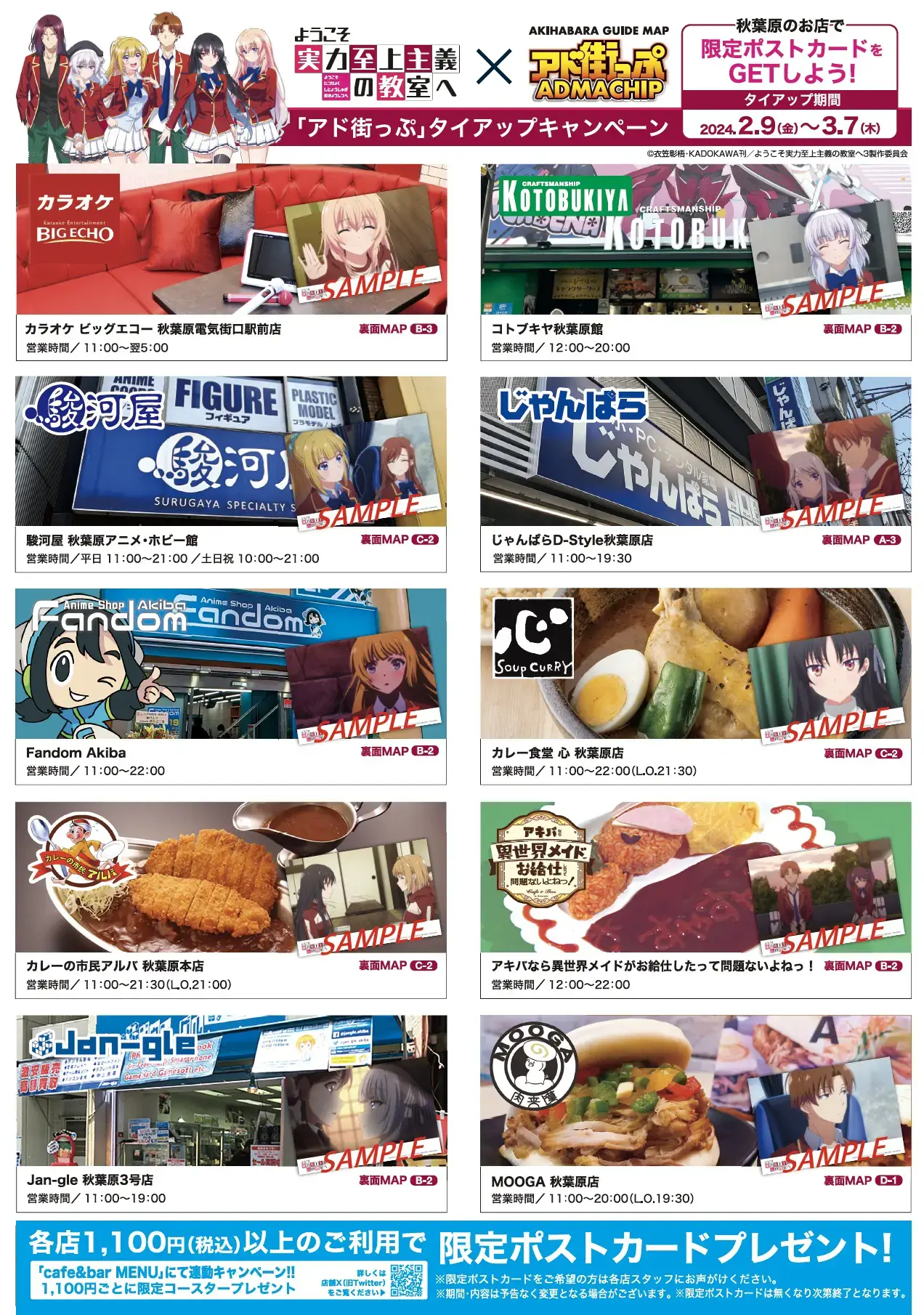 期間中に会場内にてTVアニメ『ようこそ実力至上主義の教室へ 3rd Season』関連商品(書籍、CD、Blu-ray/DVD、グッズ)をご購入・ご予約内金2,000円(税込)毎に、抽選会に1回ご参加いただけます。