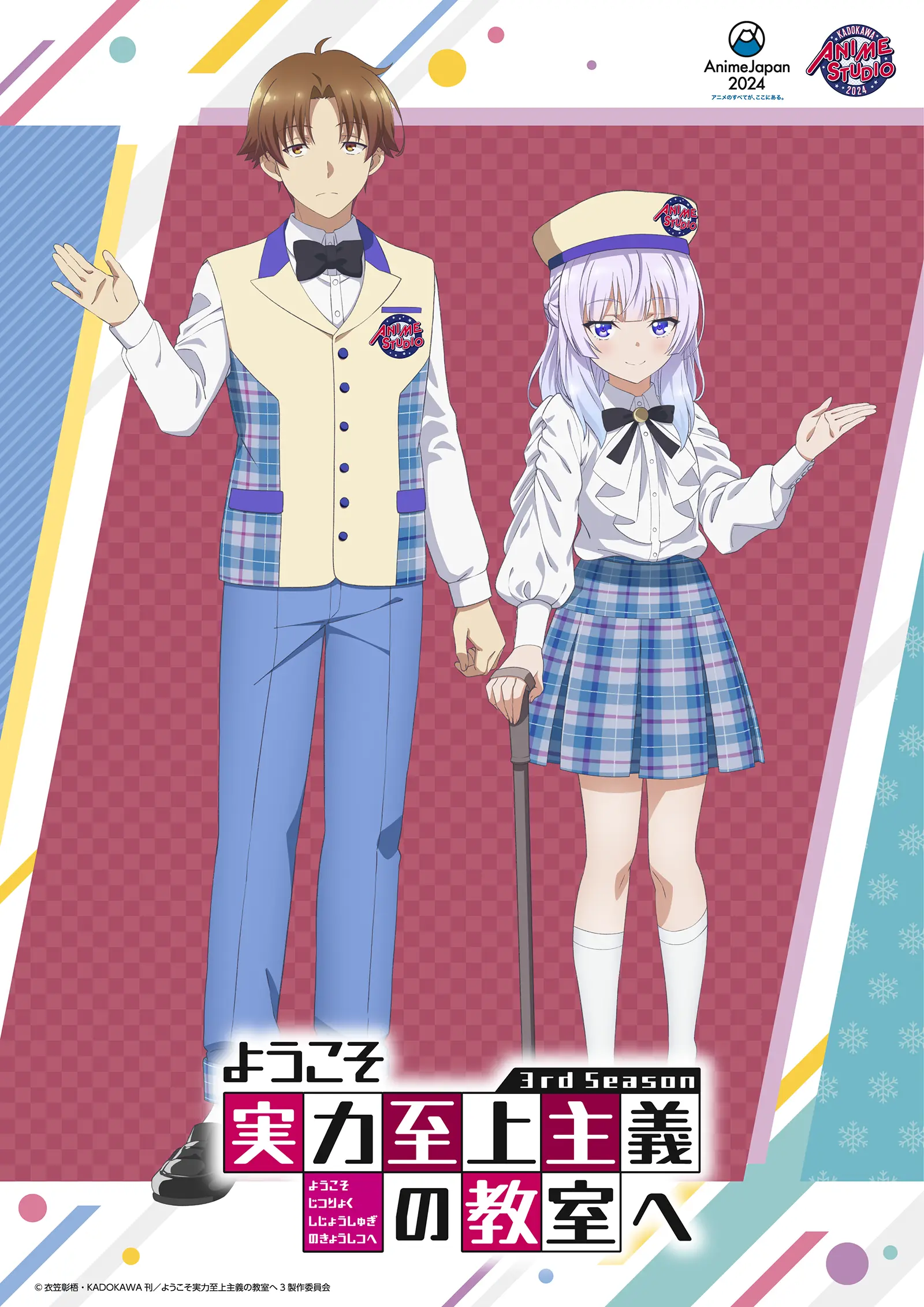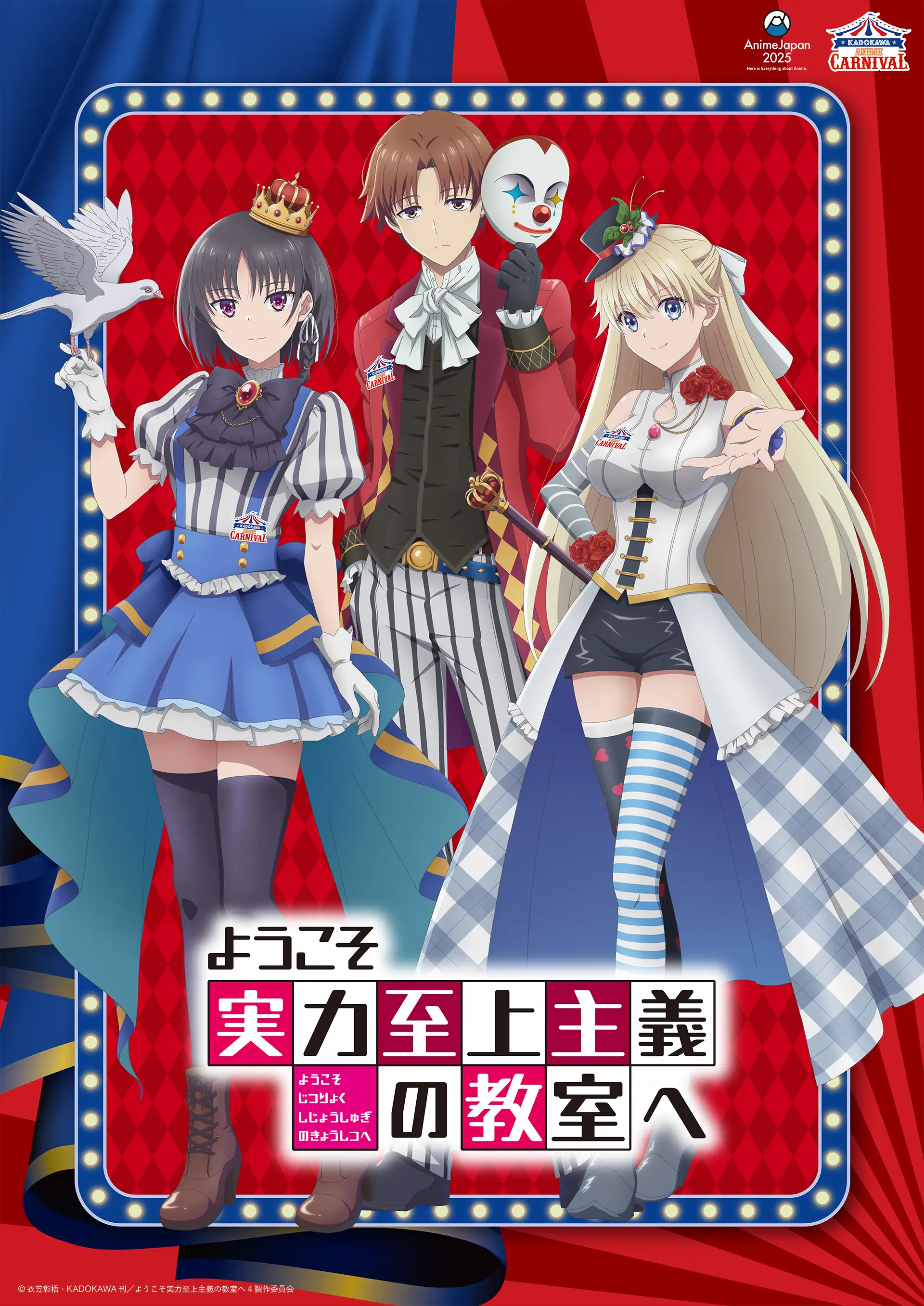 3/22(土)、23(日)開催“AnimeJapan 2025”KADOKAWAブースにて、「ようこそ実力至上主義の教室へ」の展示が実施決定! “KADOKAWA ANIME CARNIVAL”の出演者をイメージした描き下ろしメインビジュアルも公開! イラストを使用したグッズも制作中です。続報をお楽しみに!