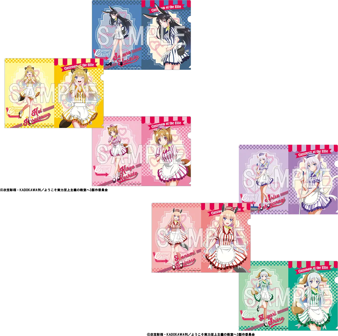「ようこそ実力至上主義の教室へ」クリアファイルセット ダイナーver. (堀北 鈴音&軽井沢 恵&櫛󠄁田 桔梗/坂柳 有栖&一之瀬 帆波&椎名 ひより) 各1,650円(税込)