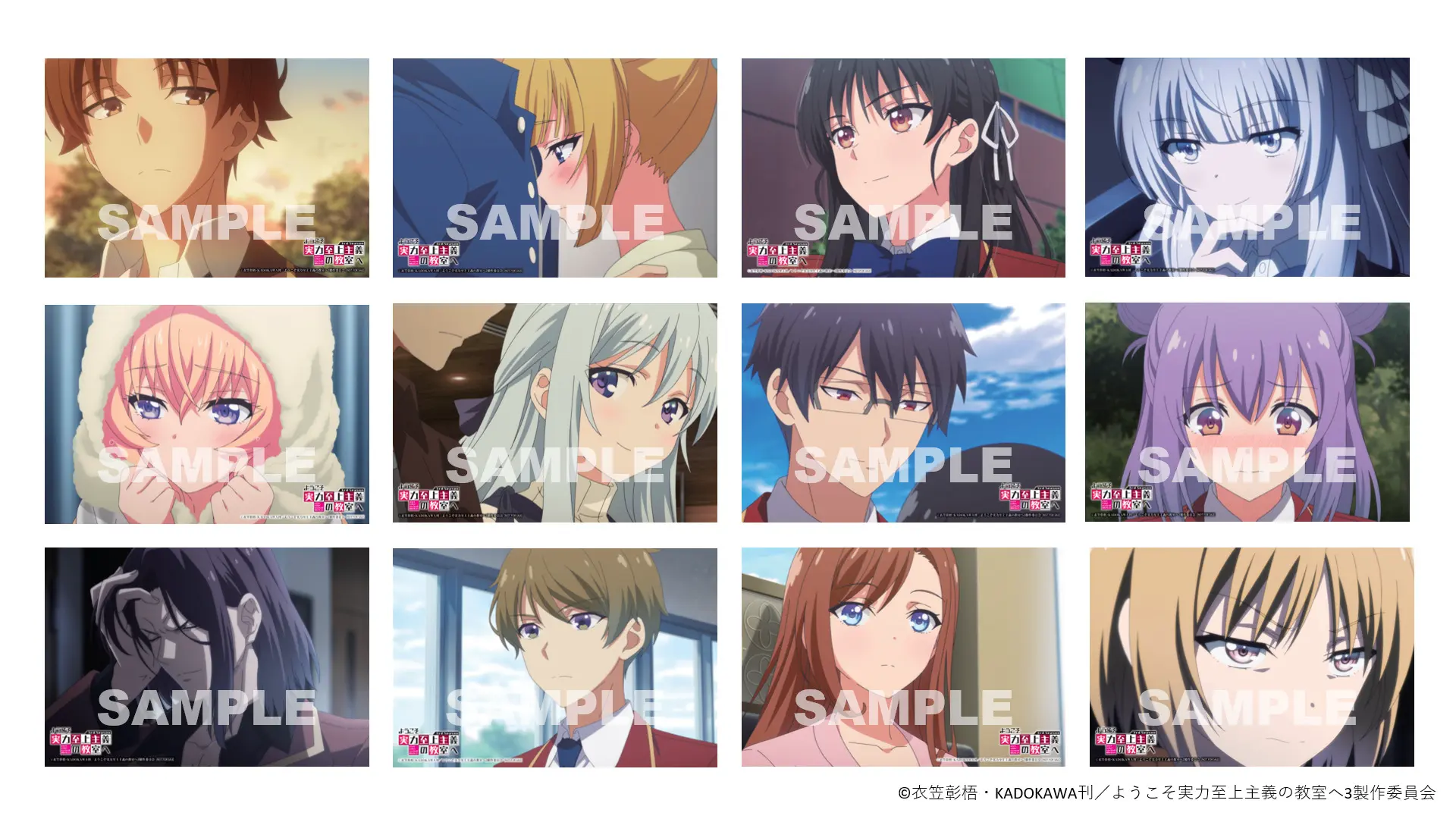期間中、ゲーマーズオンラインショップにてTVアニメ『ようこそ実力至上主義の教室へ 3rd Season』対象商品をご購入2,000円(税込)毎に特製キャラクターカード(全12種)をランダムで1種プレゼントさせていただきます。