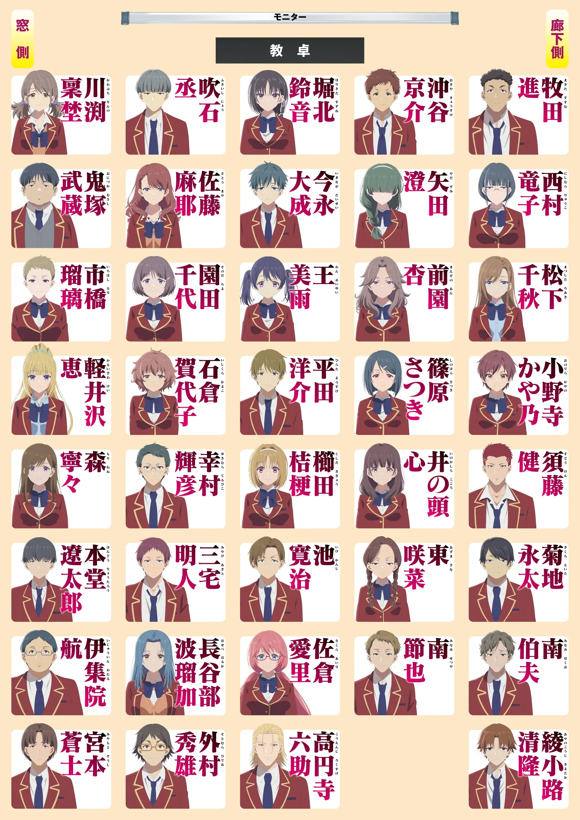 本作の主人公。 クラスでは目立たない存在だったが、特別試験を通じて一部の生徒から一目置かれるようになる。 長谷部や三宅たちとは勉強会を通じて距離が縮まったものの、最終的に自分が勝てばいいという考え方は変わっておらず、周囲の人間を利用することに罪悪感を覚えることもない。 1年生の春休みに同じクラスの軽井沢と恋人同士になったが、それも「恋愛の学習のため」と考えている。